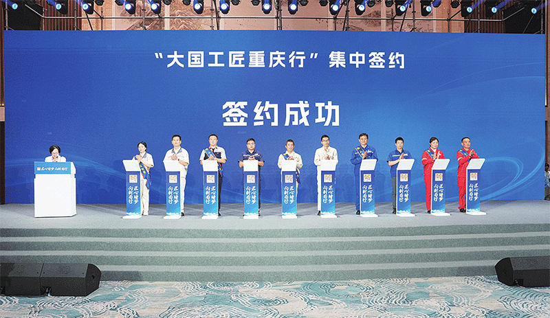 闭幕式现场,大国工匠代表举行集体签约仪式 记者林峰摄