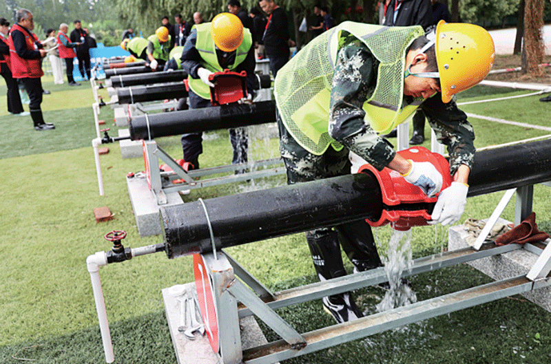 本次竞赛属于石家庄市职工职业技能一类大赛,汇聚了全市供水相关单位的十余支队伍同台竞技,赛事分为理论考试与实操考核两部分。