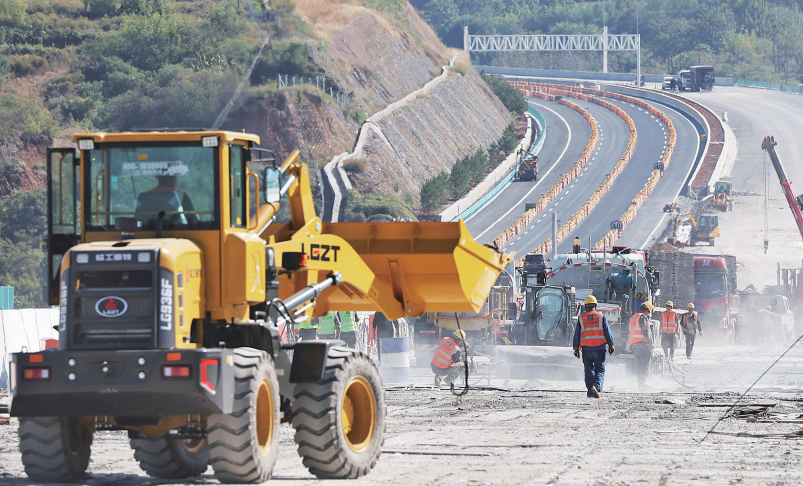 10月14日,石太高速公路改扩建项目施工现场,工人们正进行最后的收尾作业,该项目预计10月底实现全线通车。