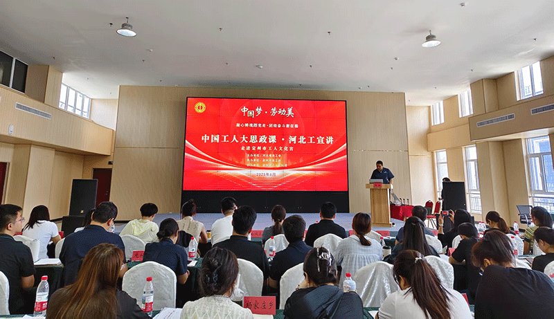 为大力弘扬劳模精神、劳动精神、工匠精神,充分发挥劳动模范的示范引领作用,激励广大职工立足岗位建功立业,6月18日,主题为“中国梦·劳动美——凝心铸魂跟党走 团结奋斗新征程”的中国工人大思政课·河北工宣讲活动在定州市工人文化宫举行。全市基层工会干部、职工代表和新就业形态劳动者代表等150余人参加活动。