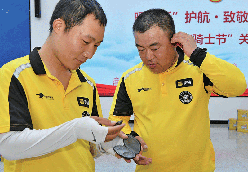 参加活动的小哥们迫不及待地打开爱心礼包。“这耳机太及时了!”骑手小李拿起一个试了试,“以前接电话总怕单手骑车不安全,这下踏实了。”骑手小王把刚领到的防晒冰袖穿在手臂,调整松紧时说:“你看,工会不仅给咱送东西,还想着帮咱争权益,现在跑在路上,觉得心里很踏实。”