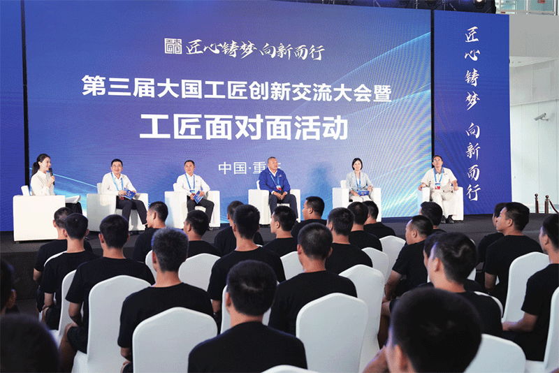 9月24日,大国工匠张雪松(右一)参加“工匠面对面”活动分享匠心感悟。