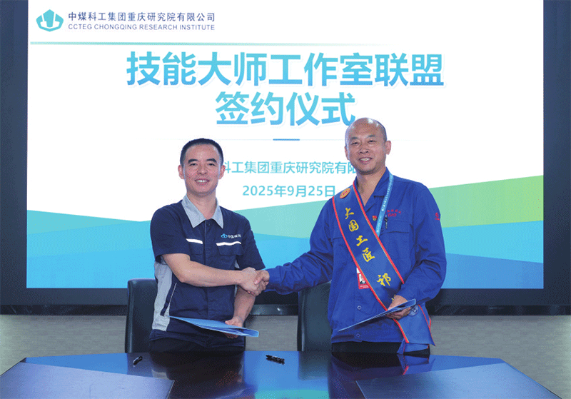 9月25日,大国工匠祁峰(右一)与中煤科工集团重庆研究院有限公司签订技能大师工作室联盟合作协议。