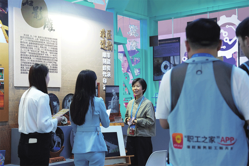 河北展区内,河北大工匠方士英现场展示、传授石影雕技艺,吸引众多大国工匠纷纷体验;“虚拟骑行环河北”互动区前人头攒动,嘉宾骑上动感单车“畅游河北”;“职工之家”APP、“冀工之家订阅号”视频号、“河北工人报”视频号等3场“云游”直播,让全国职工网友认识河北、了解河北创新。