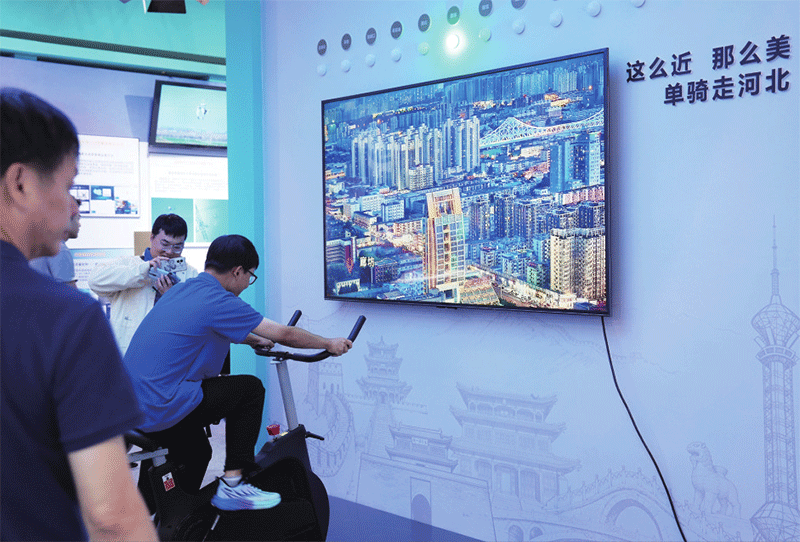 9月23日,河北展区内的“虚拟骑行环河北”互动区吸引众多嘉宾体验打卡。